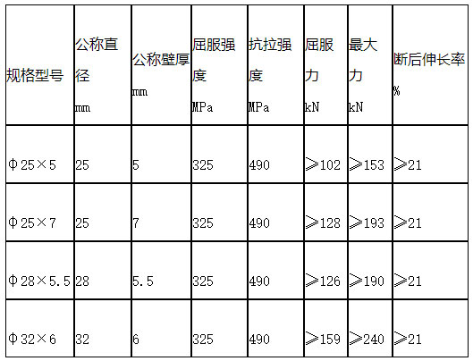 五、常用中空注浆锚杆性能指标